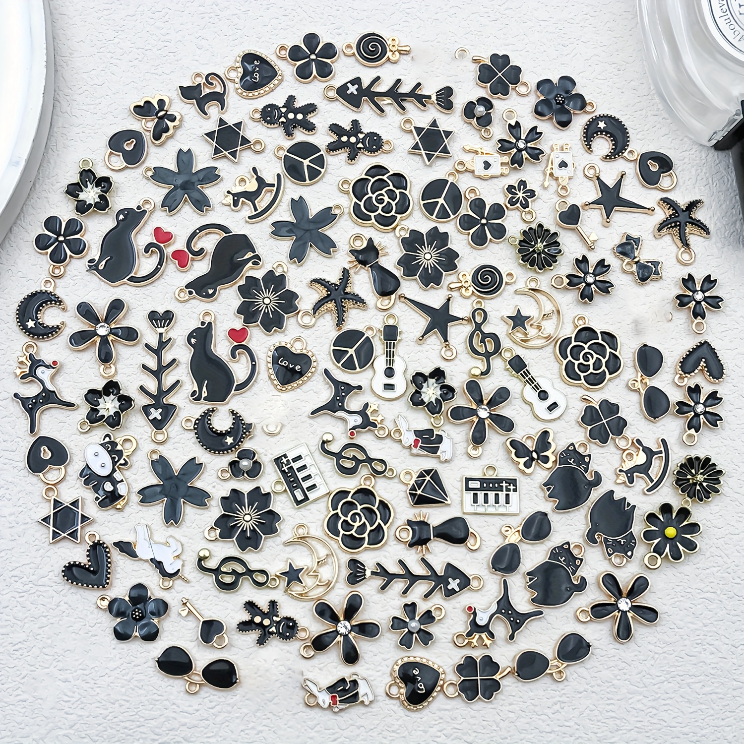 Набір із близько 100 емальованих шарміків-підвісок для рукоділля, різноманітні форми тварин, рослин, бантиків, зірок та сердечок з колечками для кріплення