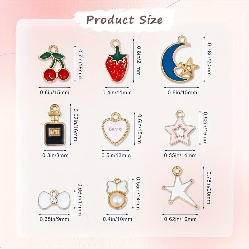 Набір підвісок емальованих, 100 шт, шарми для рукоділля, мікс тип 2 – універсальний набір для творчості та рукоділля, який дозволяє створювати прикраси, браслети, сережки, кулони, ключниці та інші декоративні аксесуари. Кожна підвіска виконана з металу та покрита яскравою емаллю, що додає виробам кольорового та ефектного вигляду.